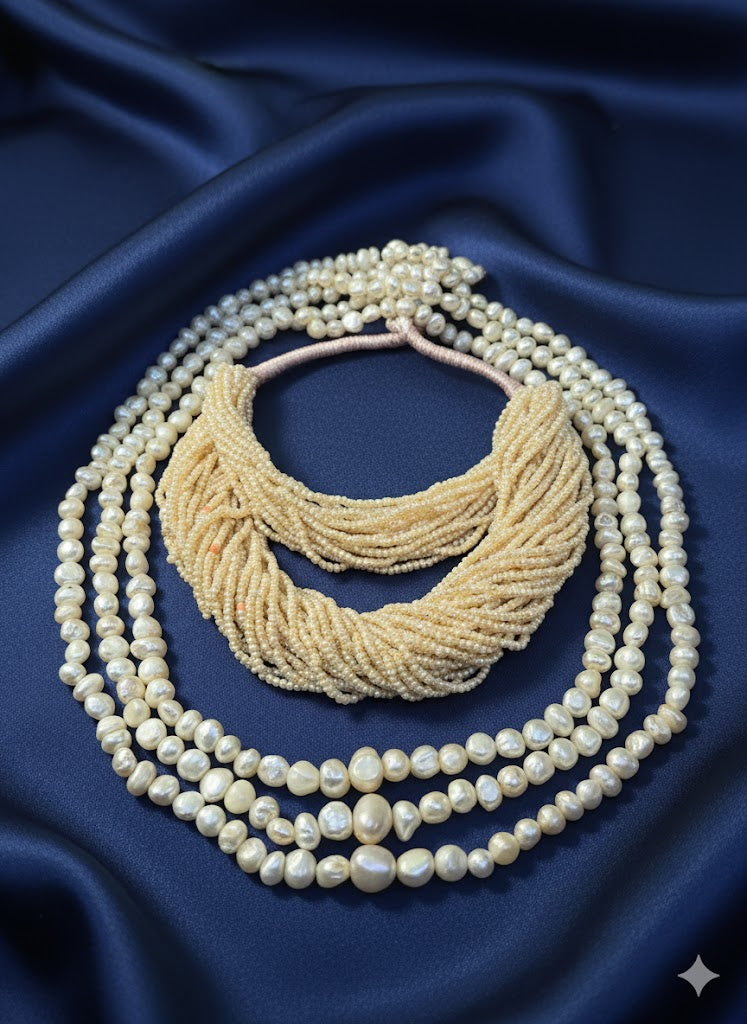 El işçiliğiyle hazırlanmış gerçek inci kolyeler, sade ama büyüleyici bir şıklık sunar.
